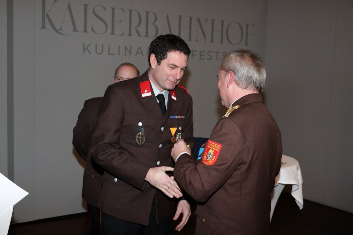 Durch Bezirkskommandantstellvertreter BR Christian Giwiser wurde, in Vertretung der Landeshauptfrau Johanna Mikl-Leitner, die „Katastrophenschutzmedaille Hochwasser 2024“ an verdiente Mitglieder verliehen.